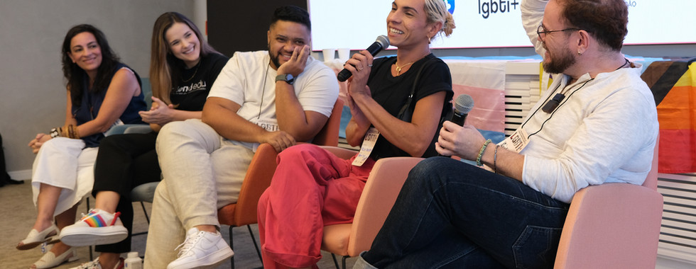 O primeiro painel da programação, “Ecossistema de formação e empregabilidade”, reuniu Eliane Damasceno (FIRJAN), Thalita Cunha (BlendEdu), Gabriel Romão (MOVER) e Wescla Vasconcelos (Fórum TT RJ). A conversa abordou iniciativas voltadas à formação, inclusão e desenvolvimento de talentos LGBTI+, destacando o papel das parcerias intersetoriais na construção de trajetórias profissionais mais diversas e sustentáveis.